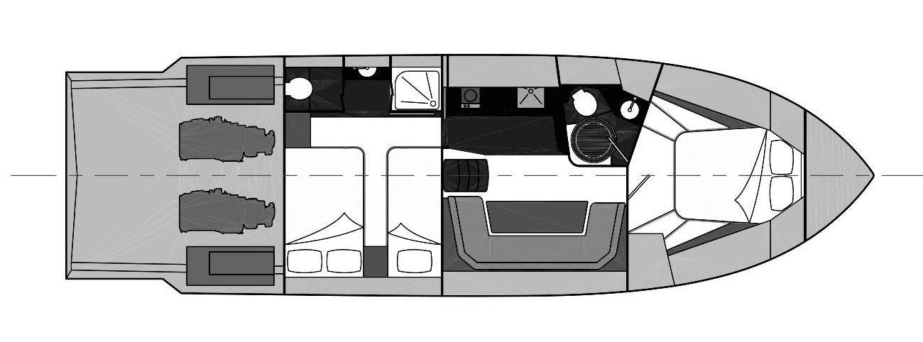 With an overall length of 13 meters (42.6 ft) and a beam of 3.85 meters (12.6 ft), the Birchwood 420 ST showcases a sleek and imposing presence on any water. The strategic draft of 1.1 meters (3.6 ft) ensures it glides effortlessly across the waves, while its displacement of 11 tons reflects its sturdy and durable build.
