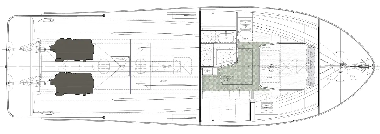 With a hull constructed from custom-woven carbon fiber and Kevlar-epoxy, the Gladiator 431 Speedster not only boasts superior strength and rigidity but also significantly reduces weight. This meticulous attention to detail ensures an exceptional weight-to-power ratio, facilitating breathtaking speeds while maintaining remarkable fuel efficiency.