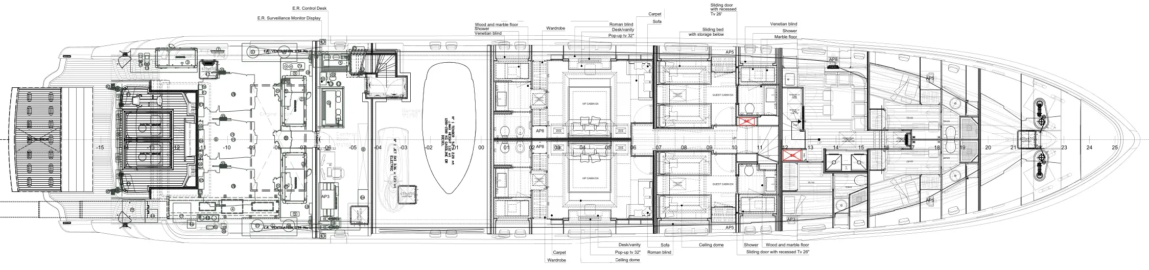 Each stateroom within the Oceanic 143 Tri-Deck is a haven of luxury, embracing guests with the finest amenities and unparalleled views of the open ocean. Encompassing spacious decks, this yacht offers a seamless flow between lavish indoor lounges and breezy outdoor areas for dining and entertaining under the stars.