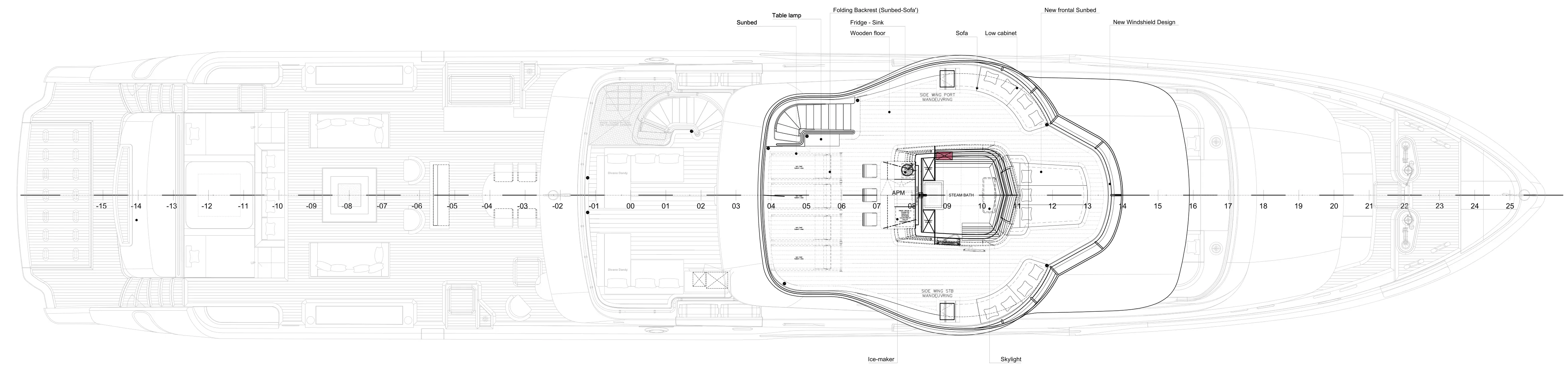 Crafted from the finest composites, the Oceanic 143 Tri-Deck epitomizes strength and agility. The hull is engineered for maximum efficiency, cutting through waves with grace and stability, ensuring performance is as impeccable as its design.