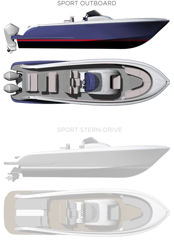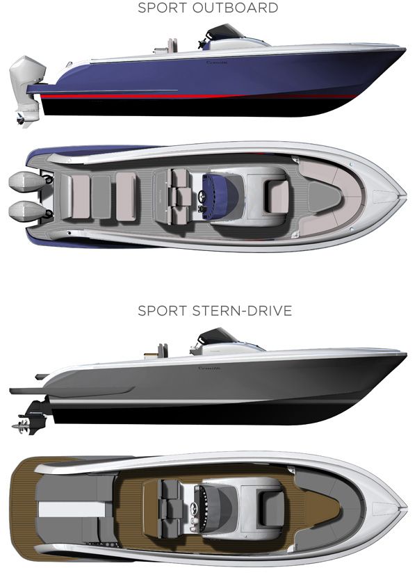 The Isola 33 is designed to impress with its monohedric hull featuring keel spray rails that ensure stable and smooth navigation. This luxury boat is versatile, available in both Sport Outboard and Sport Stern-Drive versions, catering to different boating preferences. Whether you opt for a petrol outboard engine ranging from 250 to 350 Hp or a diesel stern-drive from 220 to 270 Hp, the Isola 33 guarantees robust performance with speeds up to 52 knots at maximum power.