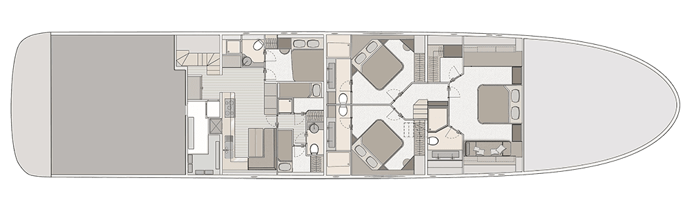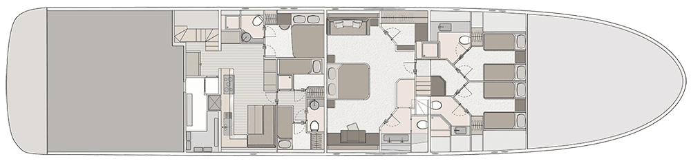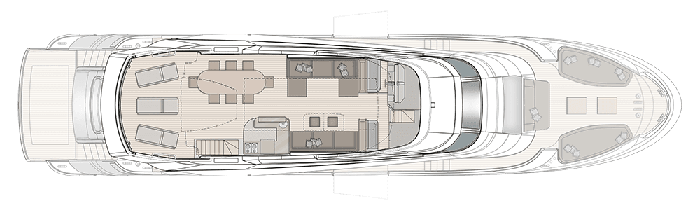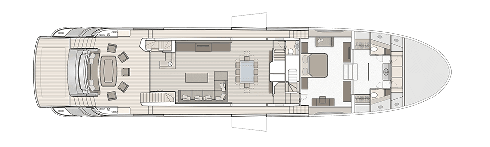 Venture into the voluminous interiors of the MCY 105, where mega-yacht luxury becomes your reality. The expansive Portuguese deck and a flybridge, unmatched in its category, invite you to bask in opulence. The Raised Pilot House not only ensures ergonomic navigation but also accentuates the master cabin with full-beam dimensions and panoramic windows, offering an immersive sea experience.