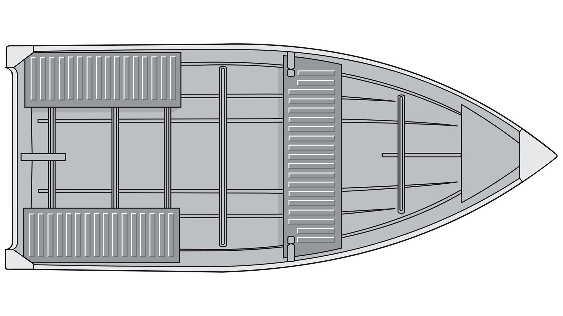 Inside the boat, fishermen will appreciate the non-skid, anti-glare interior paint finish, making their activities safer and less strenuous on sunny days. The layout includes a bulkhead center seat, parallel stern seats—all covered in durable ribbed polyethylene for added comfort and longevity.