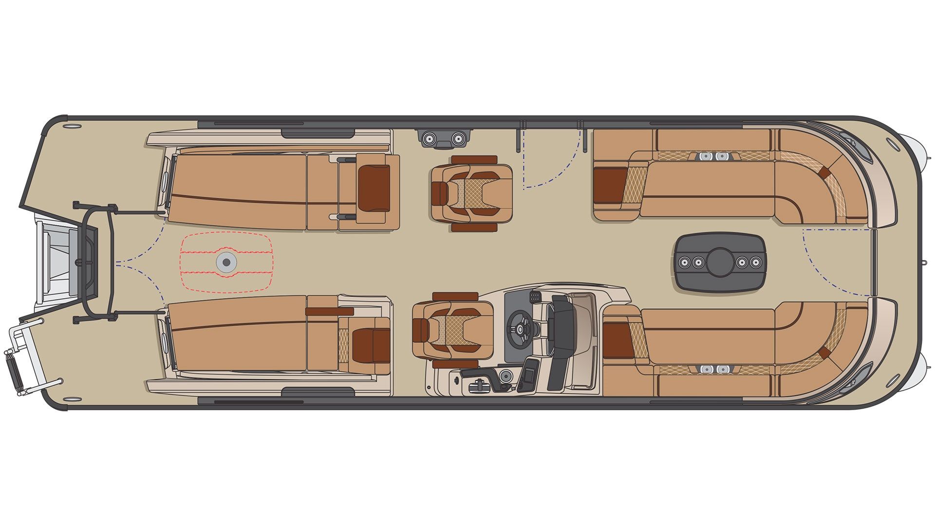 The Vogue 25 XT is not just about aesthetics; it's built to perform. With a performance configuration that includes a 3rd log, full-length aluminum under-deck spray shield, lifting strakes, and a robust 49 U.S. gallon gas tank, this pontoon is equipped for both leisurely cruises and thrilling water sports adventures.