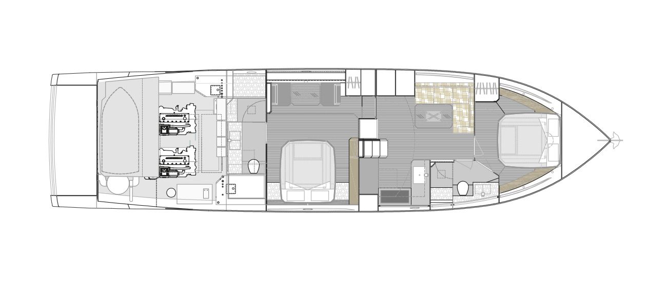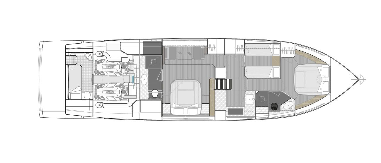 The heart of the Sport Coupe 58 is its twin MAN I6 800 (2x800HP) engines offering thrilling performance up to 35 knots, with fuel efficiency that respects its class. Advanced touchscreens ensure easy management of onboard instruments, enhancing the navigation experience.