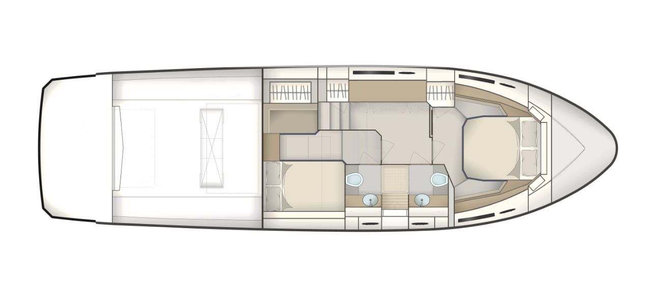 Its symmetrical lines and clean design further underscore RIO YACHTS' dedication to crafting vessels that leave a lasting impression. The Le Mans 50 is synonymous with power and freedom, boasting top speeds over 40 knots and the choice of high-performance YANMAR and MERCURY engines, catering to both inboard and outboard preferences.